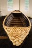 Quest’opera è il risultato di un seminario di pittura su legno tenuto da Mondino in Austria, vicino al lago di Costanza. Durante il suo primo viaggio in quella zona l’artista rimase colpito dal rivestimento in tessere di legno delle facciate delle case che, esposte alle intemperie, assumevano un colore dai riflessi argentei facendole sembrare ai suoi “occhi di miope” dei giganteschi pesci. Durante il periodo nazista le barche in questo lago, dove confinano Germania, Svizzera e Austria, erano usate per la fuga dei perseguitati politici e così Mondino le sceglie come supporto del suo progetto di pittura. Fa trasportare due vecchie imbarcazioni piene di storia e ricordi su una collina; dopo averle ripulite e rivestite di tessere Schindeln le fa dipingere dai suoi allievi con i colori delle contrade del Palio di Siena. Per l’artista il Palio custodisce lo stesso mistero di un mercato arabo, fatto di segni incomprensibili e di enigmi. Così come la Corrida, un’altra sua passione, è una festa drammatica, passionale, piena di poesia che gli ricorda la pittura.