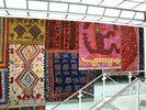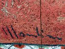 I viaggi in Oriente sono sempre stati una grande fonte d’ispirazione, sia per i soggetti sia per la sperimentazione di nuovi materiali. In un bazaar di Tangeri l’artista trova per terra un pezzo di eraclite - un tamburato industriale - che con i suoi “occhi da miope” scambia per un vecchio tappeto. Come spesso gli capita, è proprio da quel difetto della vista, a cui tiene moltissimo in quanto modifica leggermente la percezione della realtà, che nasce l’idea stupefacente di dipingere tappeti su un semplice truciolato.
