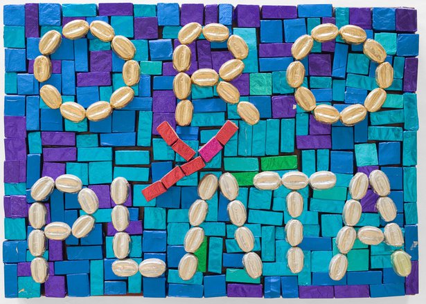 Alla fine degli anni ‘50 Mondino studia mosaico all’Ecole des Beaux-Arts di Parigi ma pensando che l’uso delle pietre o smalto avrebbe impoverito e modificato il significato del suo bozzetto, sostituisce le tessere classiche con i cioccolatini o con zollette di zucchero. Incartati appositamente per lui, da Peyrano di Torino, con un’infinita gamma di carte colorate e “una speciale mescola che dura per sempre”, realizza una lunga serie di quadri-oggetto con i cioccolatini. Tra questi Oro y plata e Sangre y arena, ispirati alla tauromachia e ai vestiti dei toreri (ma anche al cinema hollywoodiano), un tema che ha sempre affascinato l’artista.
