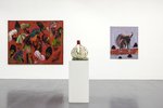 Completano la mostra alla Galleria Giuseppe Pero alcune sculture di grandi dimensioni come Scultura un corno ed Eiffel.