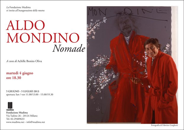 Dopo la mostra personale di Aldo Mondino tenutasi nel 1990 alla Fondazione Mudima di Milano, a distanza di 23 anni, viene ripresentata nella stessa sede una significativa selezione di opere a cura di Achille Bonito Oliva e in collaborazione con l’Archivio Aldo Mondino. Dal 28 maggio al 19 luglio, si ritrovano alcune delle grandi installazioni realizzate per quella storica occasione, oltre ad alcune opere scelte tra le serie più note dell’artista torinese (1938-2005).
