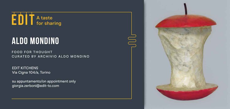 La partnership tra le due realtà nasce quindi in modo naturale e logico e per l’edizione 2017 si concretizza in una iniziativa che ben rappresenta l’unione di Arte e Food. Presso le EDIT Kitchens – a spazi non ancora inaugurati - dal 31 ottobre al 7 novembre sarà visitabile su appuntamento la mostra Food for Thought, dedicata ad Aldo Mondino per offrire ai visitatori un assaggio del suo modo immaginifico. Un omaggio al genio torinese che, con i suoi lavori in cioccolato e le grandi installazioni effimere realizzate con diversi generi alimentari, invade le sale di EDIT Kitchens creando un legame unico tra spazio, arte e cibo per la mente.