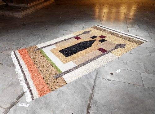 Raccolto in preghiera è un’opera effimera del 1986, proposta alla Biennale di Venezia del 1993 e consiste in un tappeto disegnato da diverse varietà di granaglie, dal riso alle fave, dai piselli ai ceci.