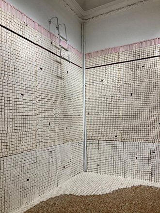 Siamo estremamente felici di aver collaborato a stretto contatto con l'Archivio Aldo Mondino per l'allestimento dello straordinario lavoro dell'artista torinese. Entrare da THE POOL NYC e finalmente immergersi in piscina... Una piscina speciale, interamente composta da un mosaico di marshmallows: un luogo di fantasia, dolce e misterioso, per poter nuotare nelle "acque" mondiniane.