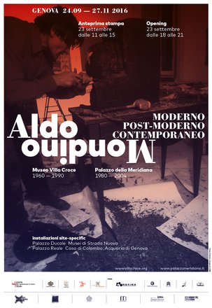 Aldo Mondino. Moderno, Postmoderno, Contemporaneo, diventa una caccia al tesoro che dalle sale neoclassiche di Villa Croce, ci spinge a scoprire la medievale Casa di Colombo, stupendoci con la superba monumentalità di Palazzo Ducale, per entrare nei saloni da ballo dei famosi Palazzi di Strada Nuova; dopo averci fatto affacciare sul mare delle terrazze di Palazzo Reale, ci immerge sottacqua nelle sale dell’Acquario, guidandoci fino al meraviglioso atrio liberty di Palazzo della Meridiana.
